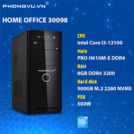 PC PV Home Office 30098 (Intel Core i3-12100/ 1 x 8GB/ 500GB SSD/ Free DOS)
